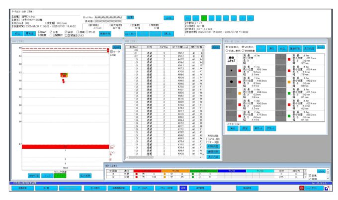 昨年2025年の7月より、弊社Factory-Ⅲの17号機(クラス10000のクリーンルーム)に欠点検査機を新たに導入致しました。 以前から大型スリッター機には欠点検査機が設置されていましたが、小切り可能機にも対応して欲しいというお客様のご要望により中型機(10丁取可能)に設置しました。 検査方式は透過と反射のどちらにも対応しており異物やピンホール、スジなど幅広い欠点の検出が可能となっております。 検査性能は速度200m/min時に、流れ方向0.16mm/幅方向0.127mmの分解能を有しており微細な欠点の検出が可能です。 フィルム欠点についてお悩みの際は是非一度弊社にご相談ください。 弊社では今後もお客様のご要望に対して全力で取り組み満足頂けるように尽力致します。引き続き、弊社の取り組みにご注目ください。